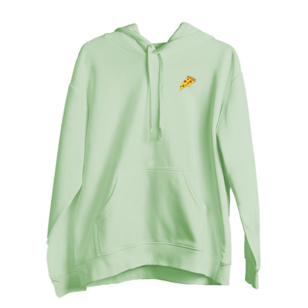 Cowabunga! Stringy, melty, cheesy embroidered pizza slice onto our ultra soft, organic, recycled, and PETA approved hoodie. Unisex. Inclusive sizing