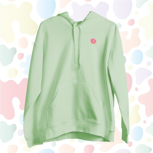 D’oh! Pink sprinkle donut embroidered onto our ultra soft, organic, recycled, and PETA approved hoodie. Unisex. Inclusive sizing range. Several
