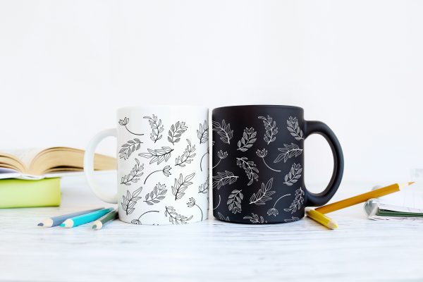 Hand-drawn foliage and flowers ceramic mug