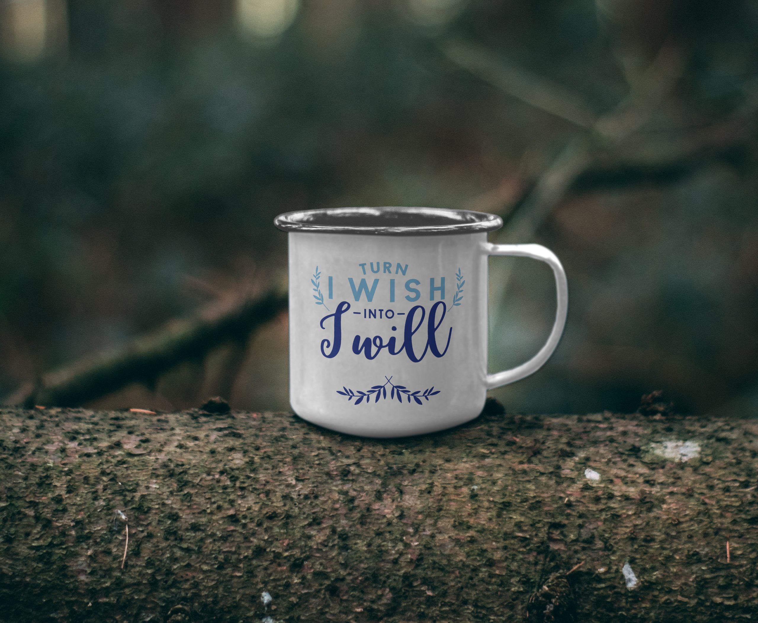 10oz enamel camping style mug. Not suitable for dishwasher or microwave. Hand wash with a soft cloth.