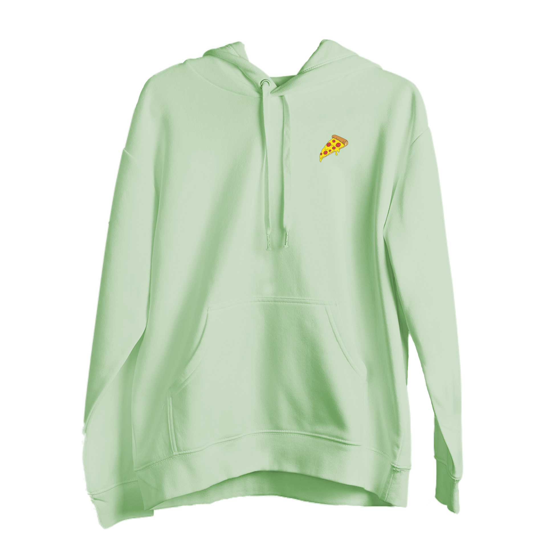Cowabunga! Stringy, melty, cheesy embroidered pizza slice onto our ultra soft, organic, recycled, and PETA approved hoodie. Unisex. Inclusive sizing range. Several colours to choose from.
