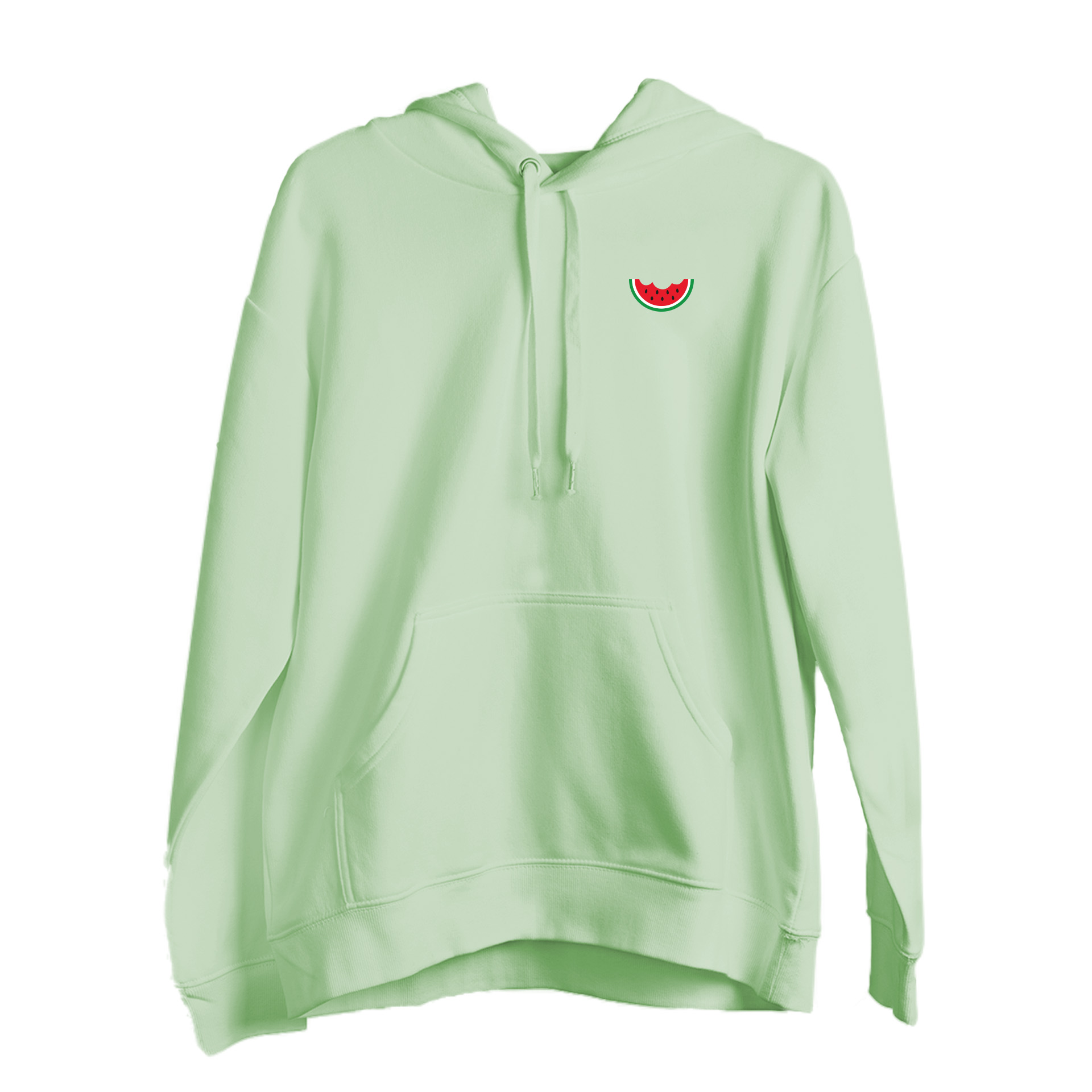 Mouth watering watermelon wedge so juicy it’s already been nibbled! Embroidered onto our ultra soft, organic, recycled, and PETA approved hoodie. Unisex. Inclusive sizing range. Several colours to choose from.