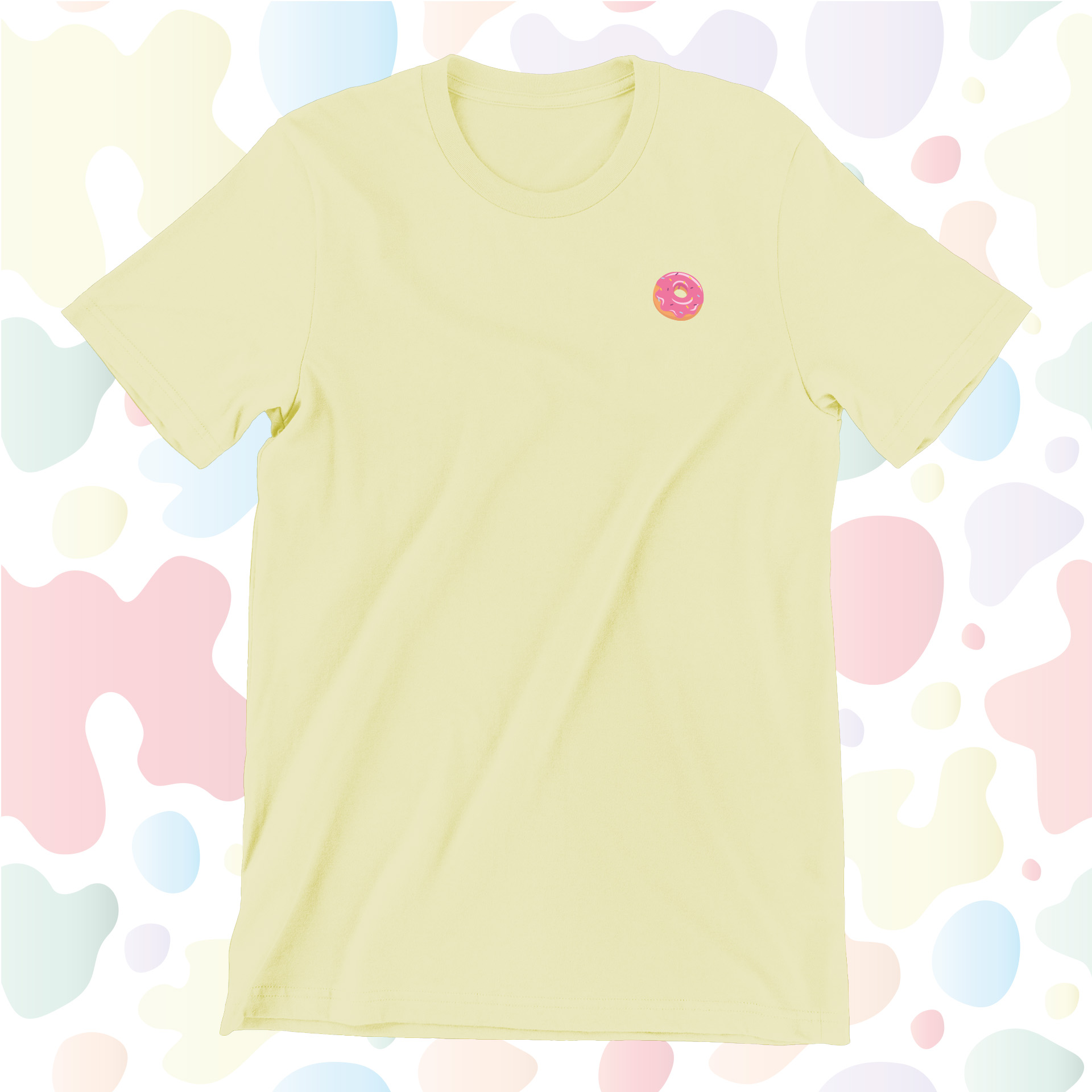 D’oh! Pink sprinkle donut embroidered onto our ultra soft, 100% organic cotton and PETA approved short-sleeve t-shirt. Unisex. Inclusive sizing range. Several colours to choose from.