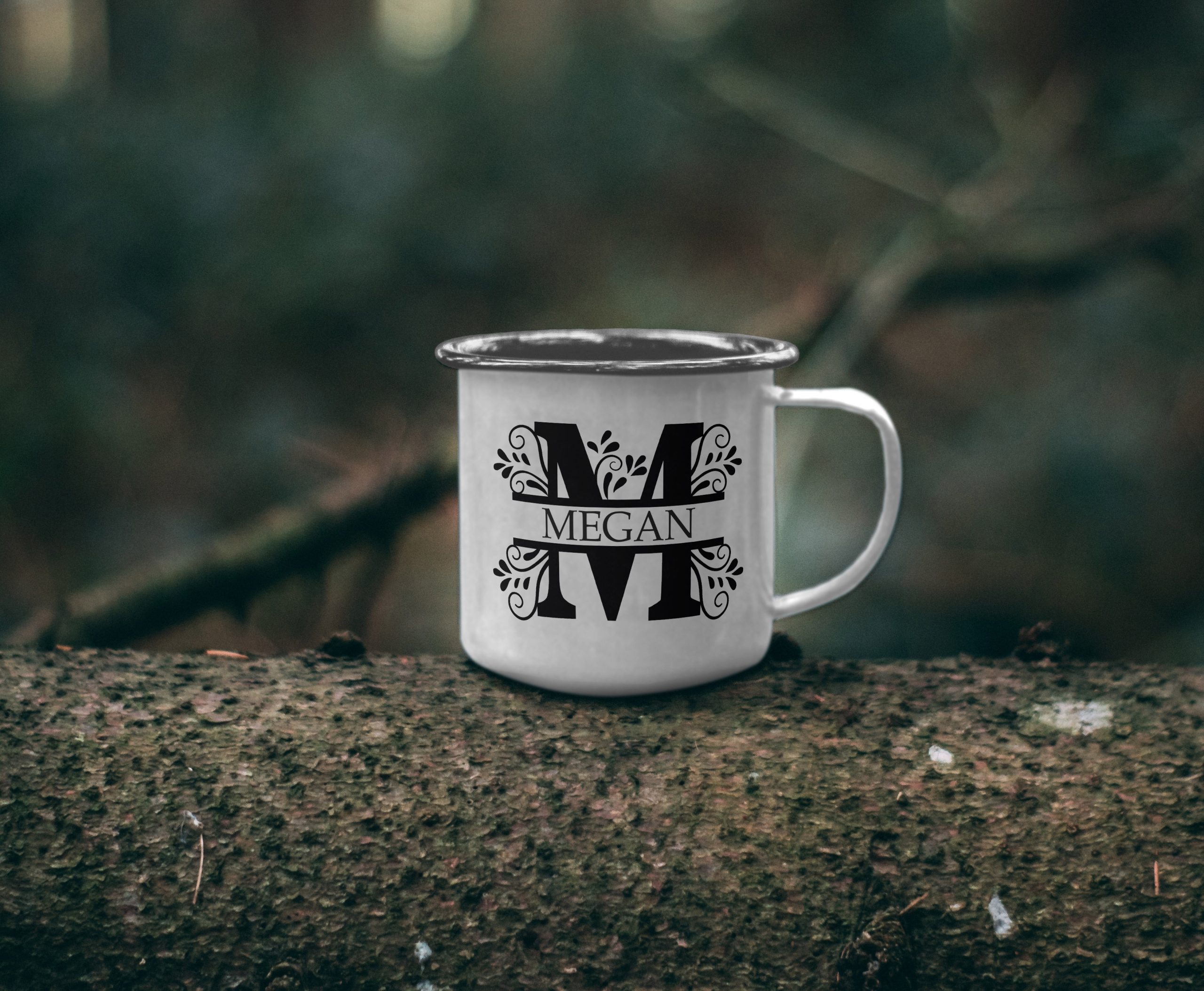 10oz enamel camping style mug. Not suitable for dishwasher or microwave. Hand wash with a soft cloth.